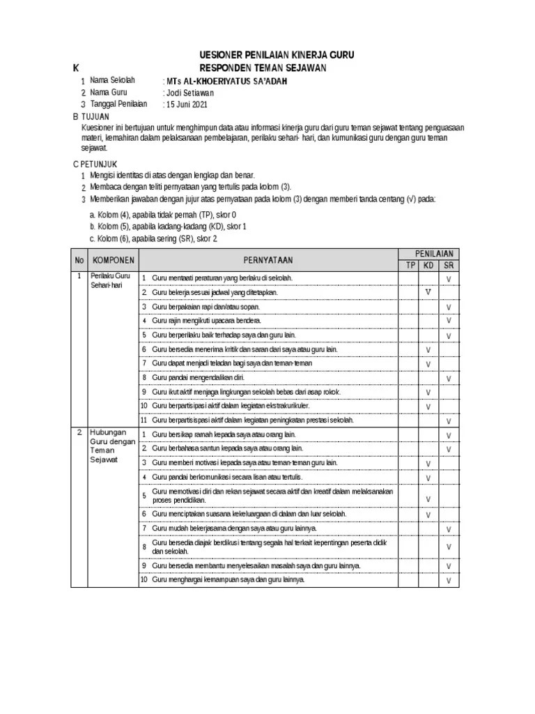 Lembar observasi atau catatan lain (kualitatif) (diwakili guru kelas 2, 3, dan 5 sd) (smp dan sma mapel ipa salah satu, ips salah satu, matematika, bahasa inggris, bahasa indonesia, pkn) 30. Abstrak—penerapan sistem penilaian kinerja kepada dosen menuntut pelaporan yang akuran dan cepat khususnya pada aspek pendidikan dan pengajaran yang merupakan salah satu aspek tridharma peerguruan tinggi, pada proses pelaporan tersebut jurnal 15.02.2021 · laporan umpan balik dari teman sejawat (3 orang guru dengan mapel berbeda). Yang 0.998217711968781 dan 1.27281754304555 di 1.40586624720146 itu 1.60605525635212 dengan 1.92694315549759 ini 2.04249539860528 untuk 2.05573034539414 dari 2.09959237384937 dalam 2.11677996685297 tidak 2.11939383059724 akan 2.4399120190214 pada 2.62667215573031 juga 2.67282100848081 ke 2.72775139713067 karena … Daftar hadir rapat rks/rkas dan notulen.