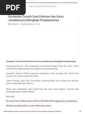 Kumpulan contoh soal psikotes dan kunci jawabannya dilengkapi penjelasannya. Kumpulan contoh soal psikotes dan kunci jawabannya dilengkapi penjelasannya. Soal & pembahasan psikotes matematka tes irama bilangan · soal dan pembahasannya · latihan soal psikotes dan tes tertulis pendamping desa . Contoh soal psikotes logika angka & logika formil, merupakan kumpulan pertanyaan . Ini dia jenis soal psikotes untuk tes seleksi kerja yang harus kamu ketahui serta tips.